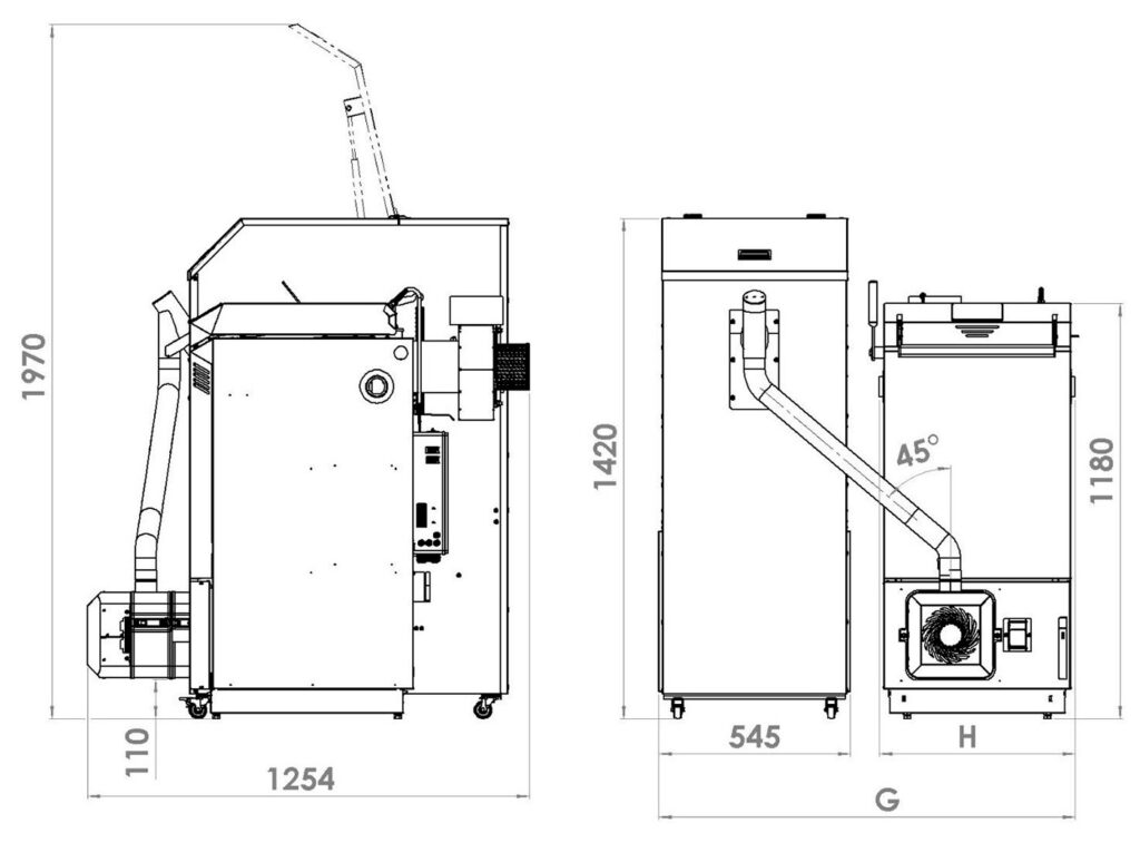• Možnost volby typu zásobníku na pelety a délky podavače