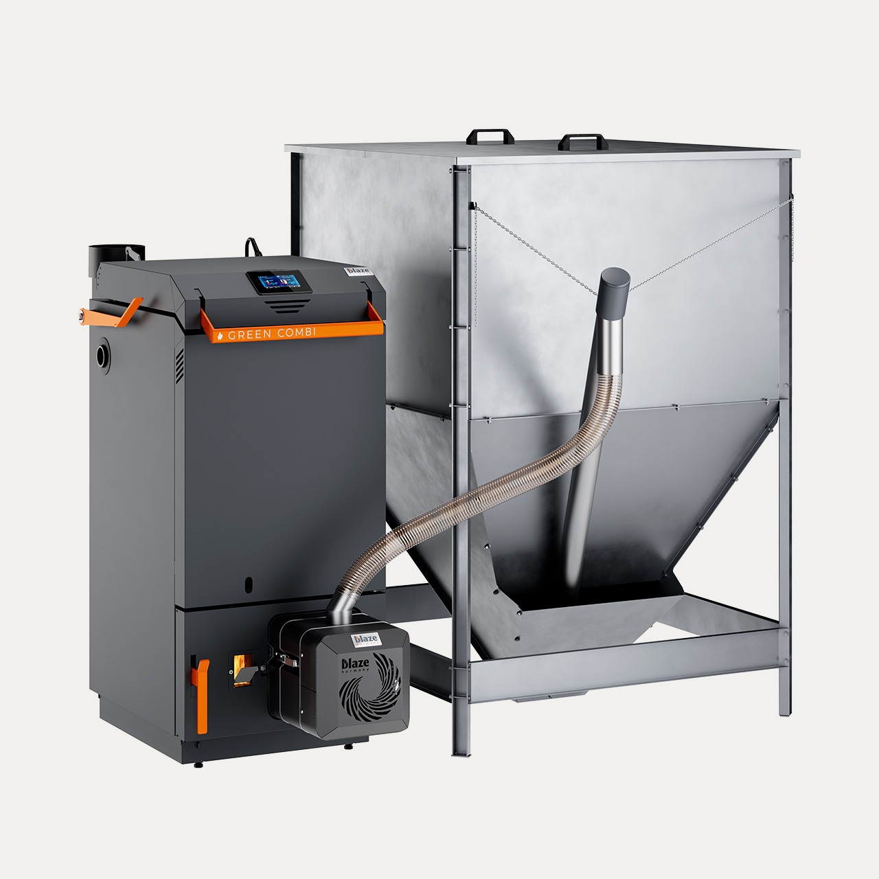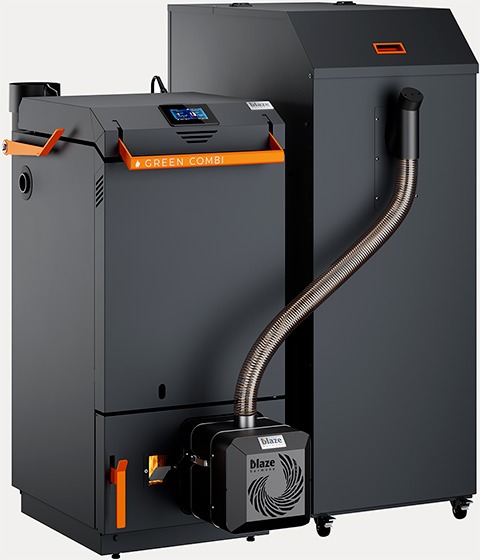 Jedná se o kotel BLAZE GREEN, který je doplněn o rotační hořák na pelety. Všechny výhody kotle BLAZE GREEN jsou zachovány a kombinovaný kotel navíc nabízí možnost spalovat také dřevní pelety. Přechod na spalování pelet je automatický, čímž je zajištěn nepřetržitý provoz.
