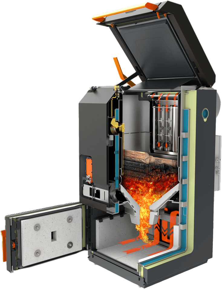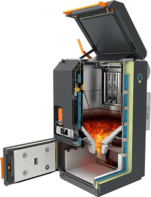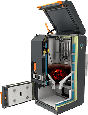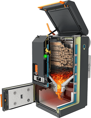 Po krátké době dojde k rozhoření dřevěného uhlí a následně je možné přiložit rovnou větší kusy paliva. Pomocí mechanismu detekce zbytkového paliva je zajištěn vysoký komfort obsluhy vzhledem k absenci nových roztápěn, kdy uživatel musí kotel čistit, štípat malé třísky a čekat, než se kotel rozhoří.